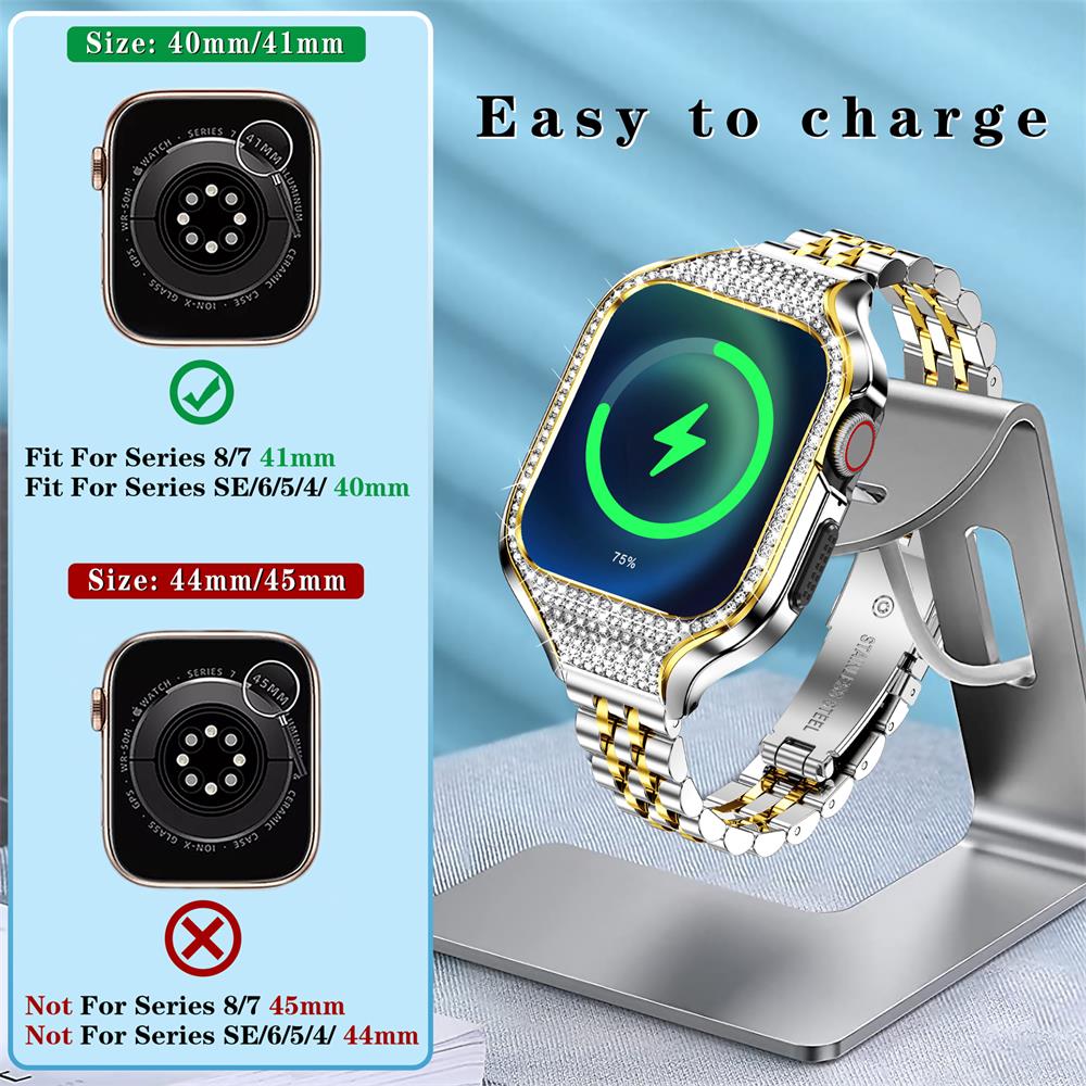 [✅Compatible] Slim metal watch band and case compatible with apple watch 40mm(Series SE/6/5/4), 41mm(Series 8/7).