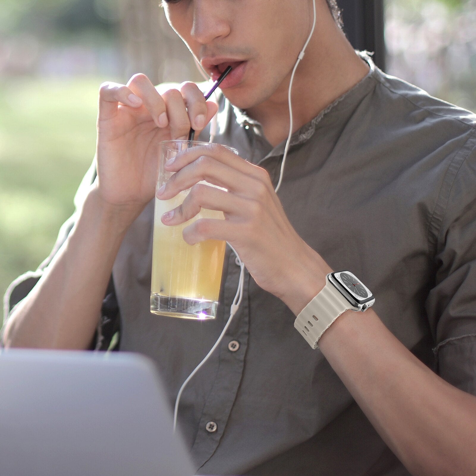 Newest Design:This silicone ocean band is made of soft silicone, skin-friendly, lightweight and flexible. It is molded in a high performance elastomer with a tubular geometry, breathable and comfortable for wearing.