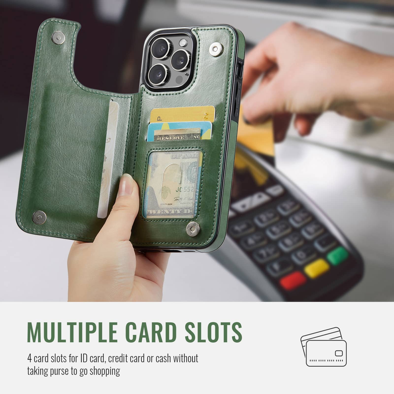 - PRACTICAL CARD HOLDER: Double Magnetic Buttons Flip Design Wallet case for women and men with 4 card slots for ID cards, credit cards, or some cash, without taking your purse outdoors. Solve daily consumption.